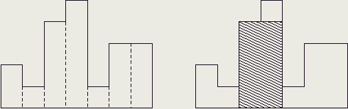 히스토그램은 직사각형 여러 개가 아래쪽으로 정렬되어 있는 도형이다. 각 직사각형은 같은 너비를 가지고 있지만, 높이는 서로 다를 수도 있다. 예를 들어, 왼쪽 그림은 높이가 2, 1, 4, 5, 1, 3, 3이고 너비가 1인 직사각형으로 이루어진 히스토그램이다.