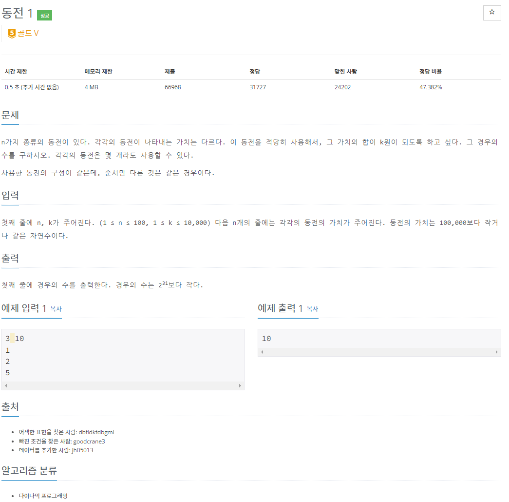 https://www.acmicpc.net/problem/2293