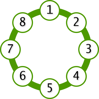 (외선 순환의 계산은 (1-2+8)%8) - 1에서 8로 가는 경우