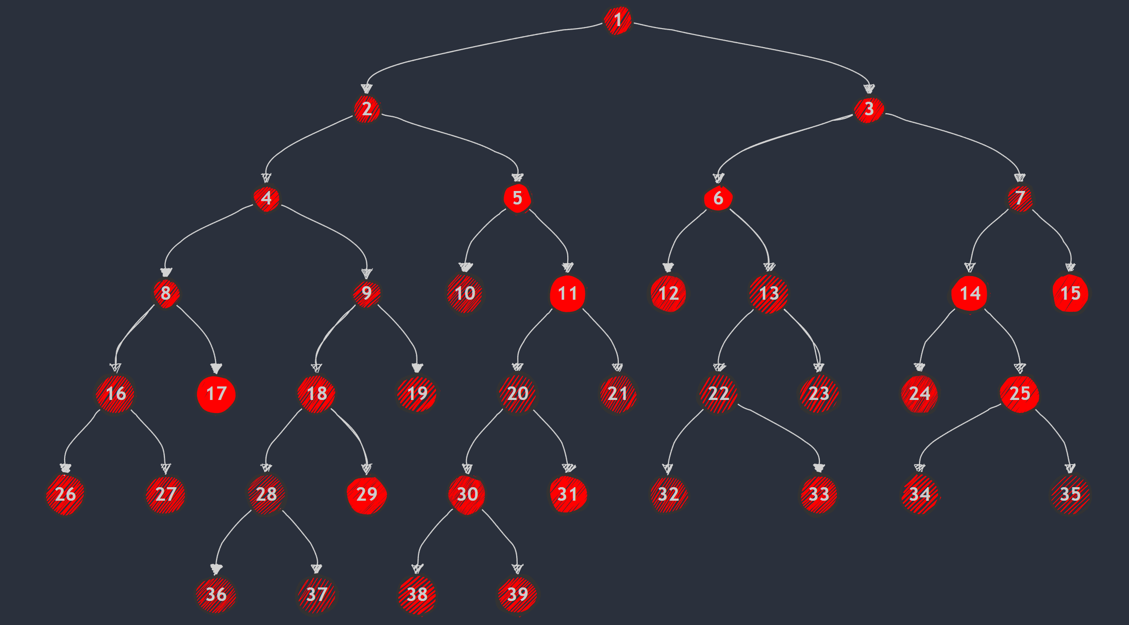 예를 들어 n=5(총 노드 수)인 경우,