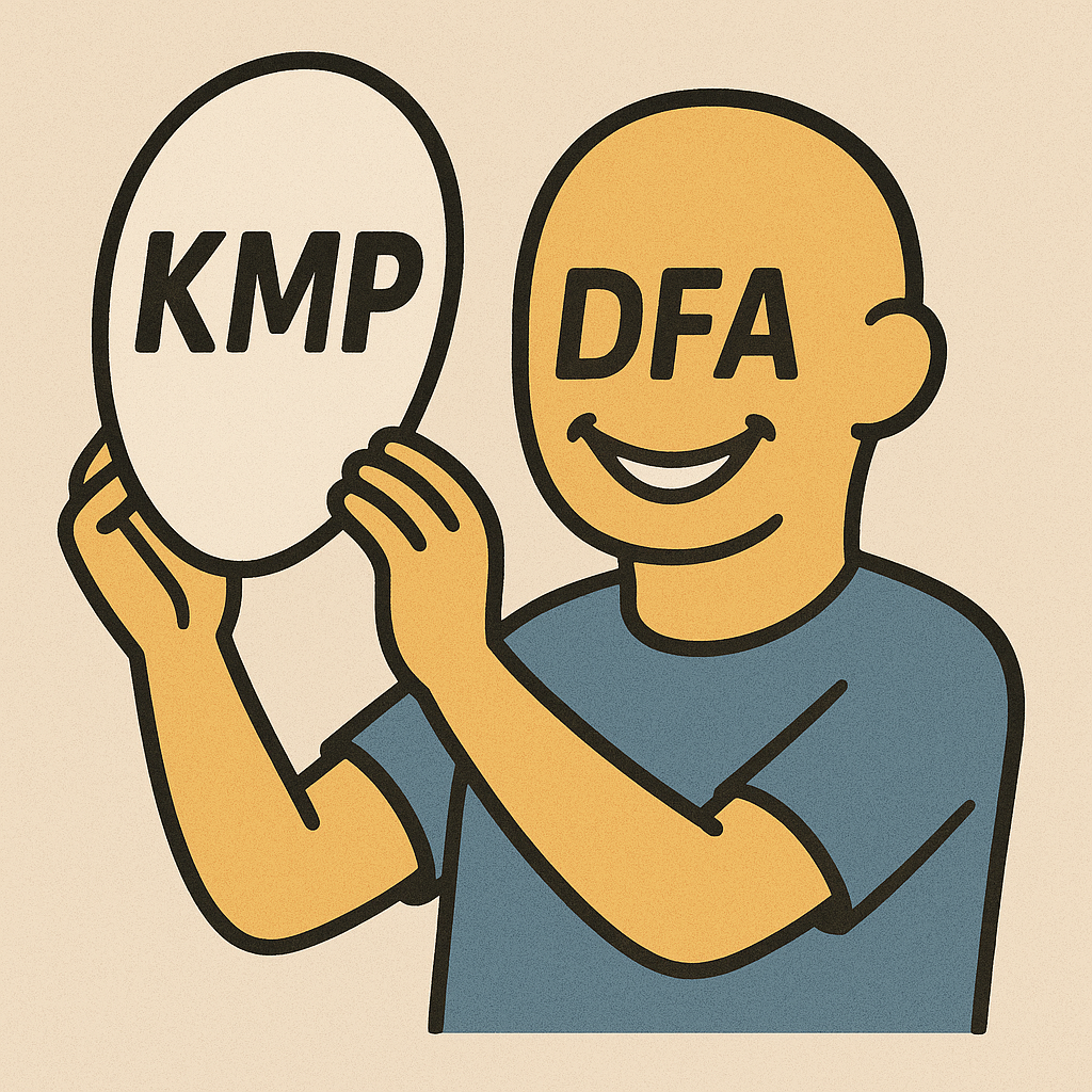 문자열 검색 알고리즘인 KMP (Knuth-Morris-Pratt)는 단순한 비교가 아니라, 오토마타(DFA)처럼 상태를 가지며 동작하는 구조로도 이해할 수 있습니다. 이 글에서는 최대한 쉽게 그 원리를 풀어보겠습니다.