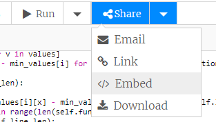코드 편집창에서 코드를 입력하고 쉐어 임베드를 선택하면 된다.